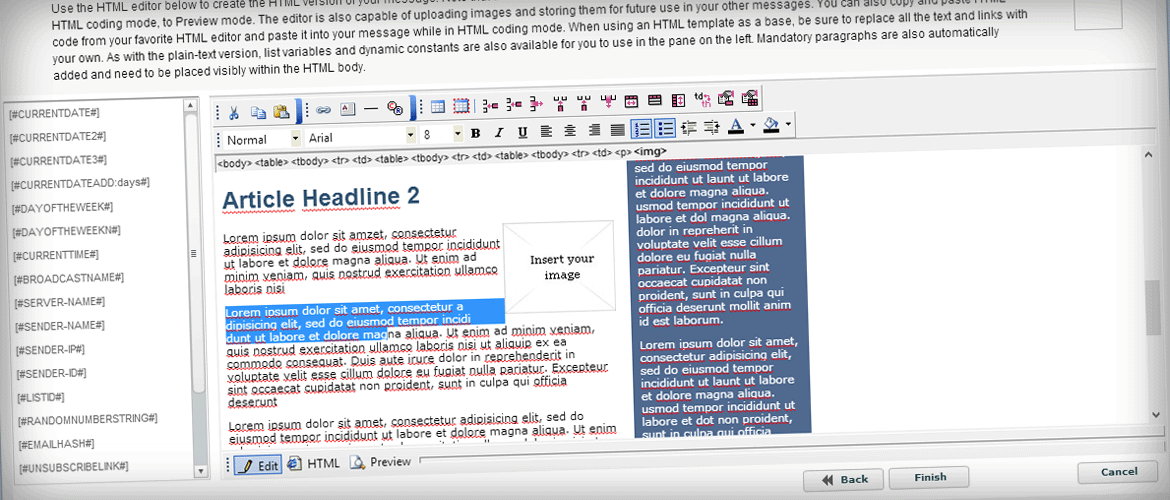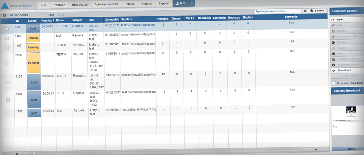 The DeliverabilityAgent platform’s web-based interface is an extremely robust application in itself. We have included many features that allow you to import and manage your lists, create text and/or robust HTML emails, schedule broadcast campaigns, set up autoresponder sequences, view activity reports, manage incoming mail, and much more. No need to worry about being overloaded with too many features, as we have designed the interface to be easy to use - all tasks are wizard-driven. The system also ensures that your emails are fully CAN-SPAM compliant.